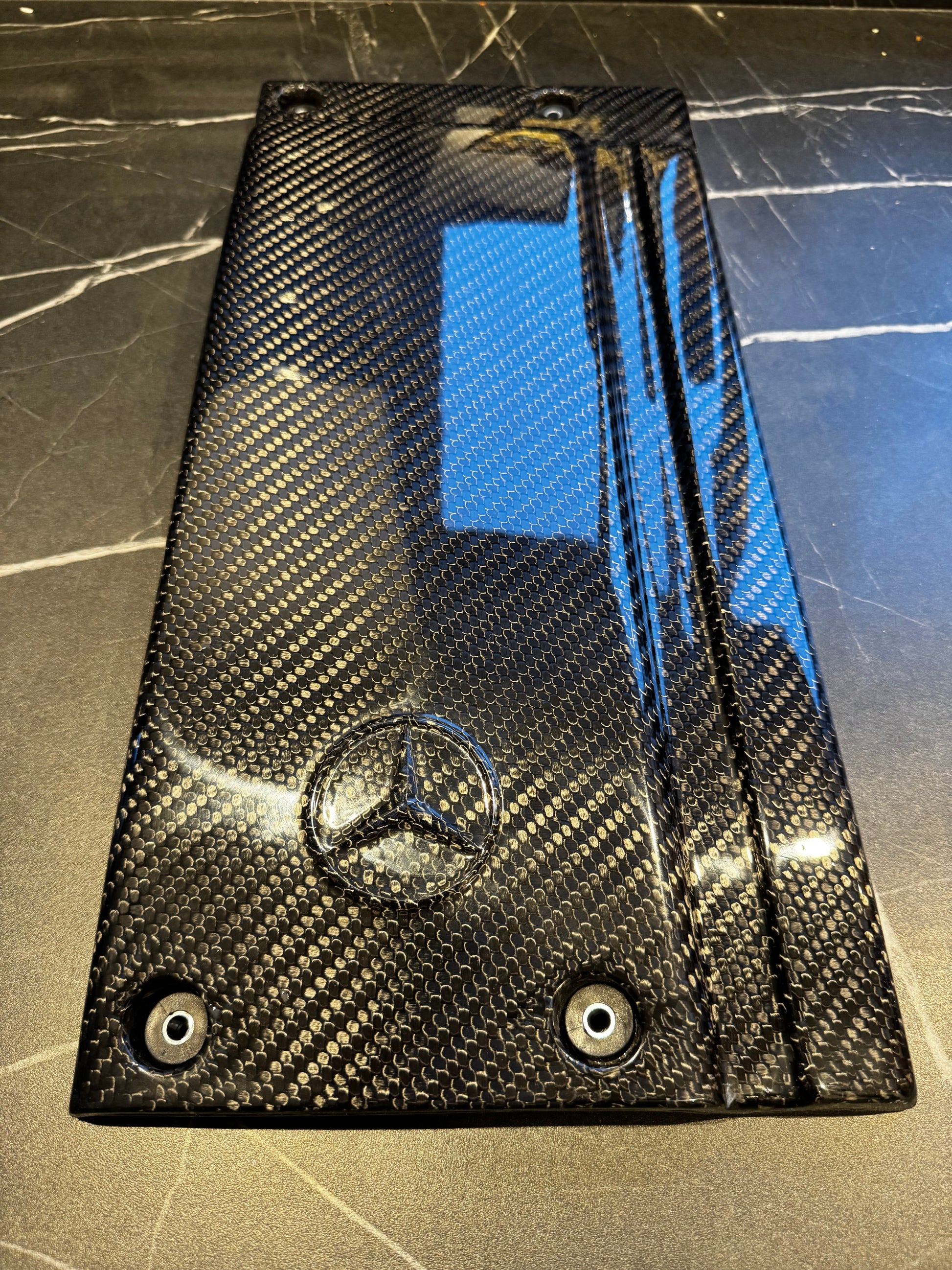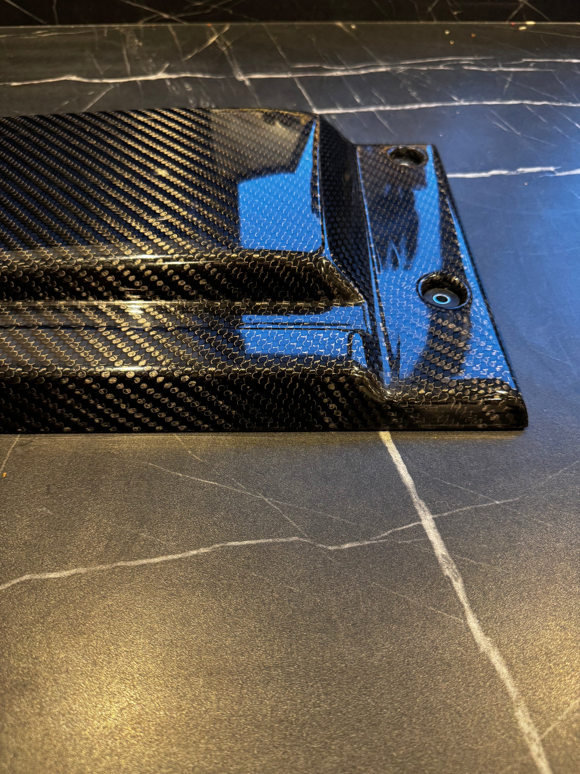 Glossy Infused carbon fibre engine cover. Hand finished in the uk.